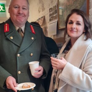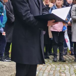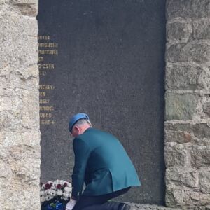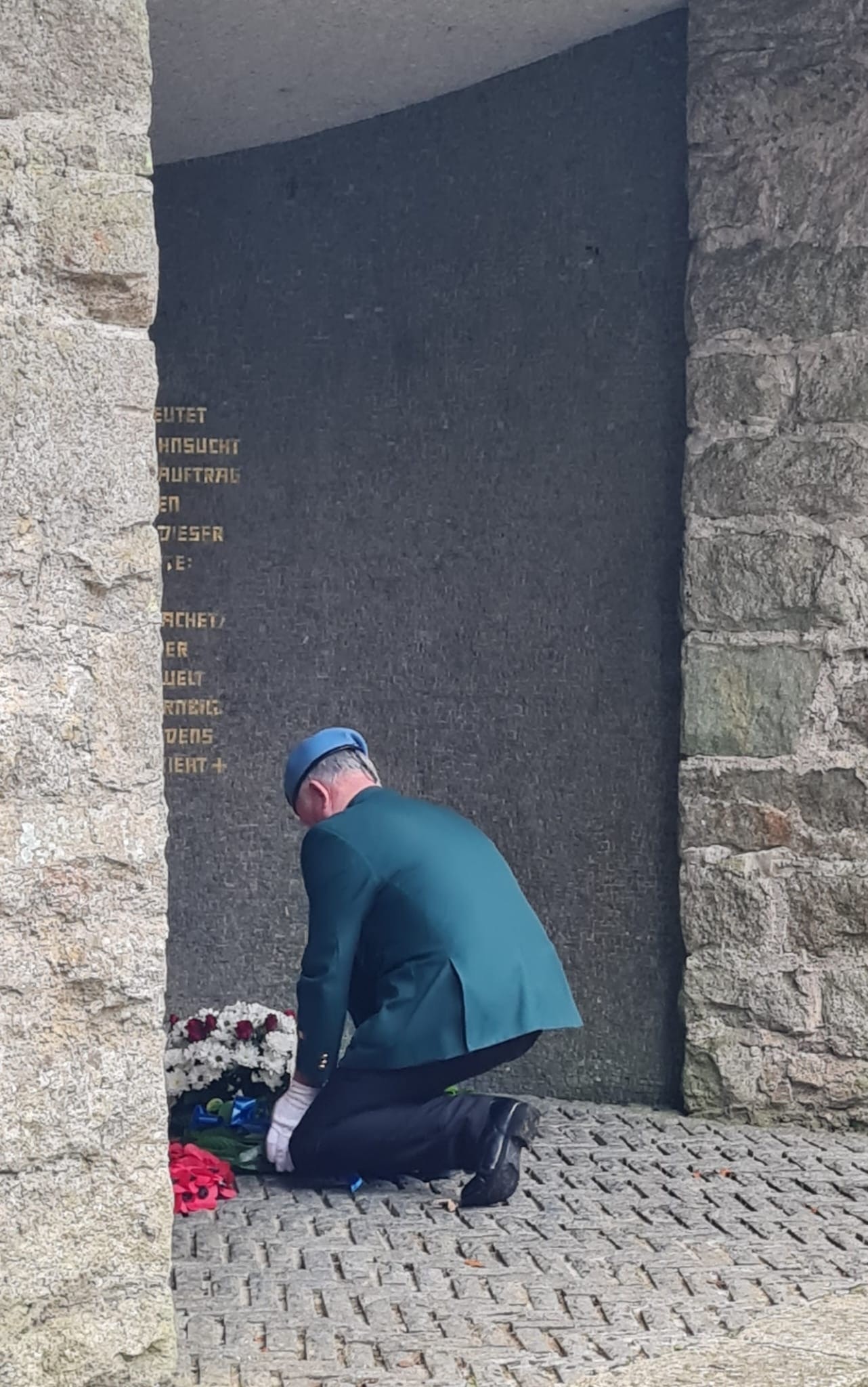 As part of the commemoration, a symbolic lantern procession led by a Piper from the Irish Defence Forces made its way to the German Military Cemetery, where Ambassador Gill joined representatives of veteran organisations in laying wreaths in remembrance. Afterwards, guests had the chance to meet, chat and reflect together as they enjoyed the warm hospitality of the Armoury Café.