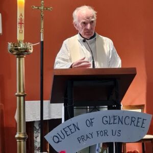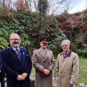 Among those present were German Ambassador H.E. David Gill, Belgian Ambassador H.E. Nicolas Nihon and Bulgarian Ambassador H.E. Vanya Andreeva-Malakova. They were joined by military attachés from the German diplomatic corps, Col. Sean Grant, British Defence Attaché to Ireland, and Brigadier General Stephen Ryan of the Irish Defence Forces, along with serving and retired members of the Defence Forces of Ireland, the Royal British Legion and a range of veteran groups. Also in attendance were delegates from the German Embassy, Cllr. Melanie Corrigan, Chair of Wicklow County Council, Fr. Lorcan O’Reilly OMI, Oblates Provincial, together with Glencree members, partners, neighbours, friends and Glencree Board and staff.