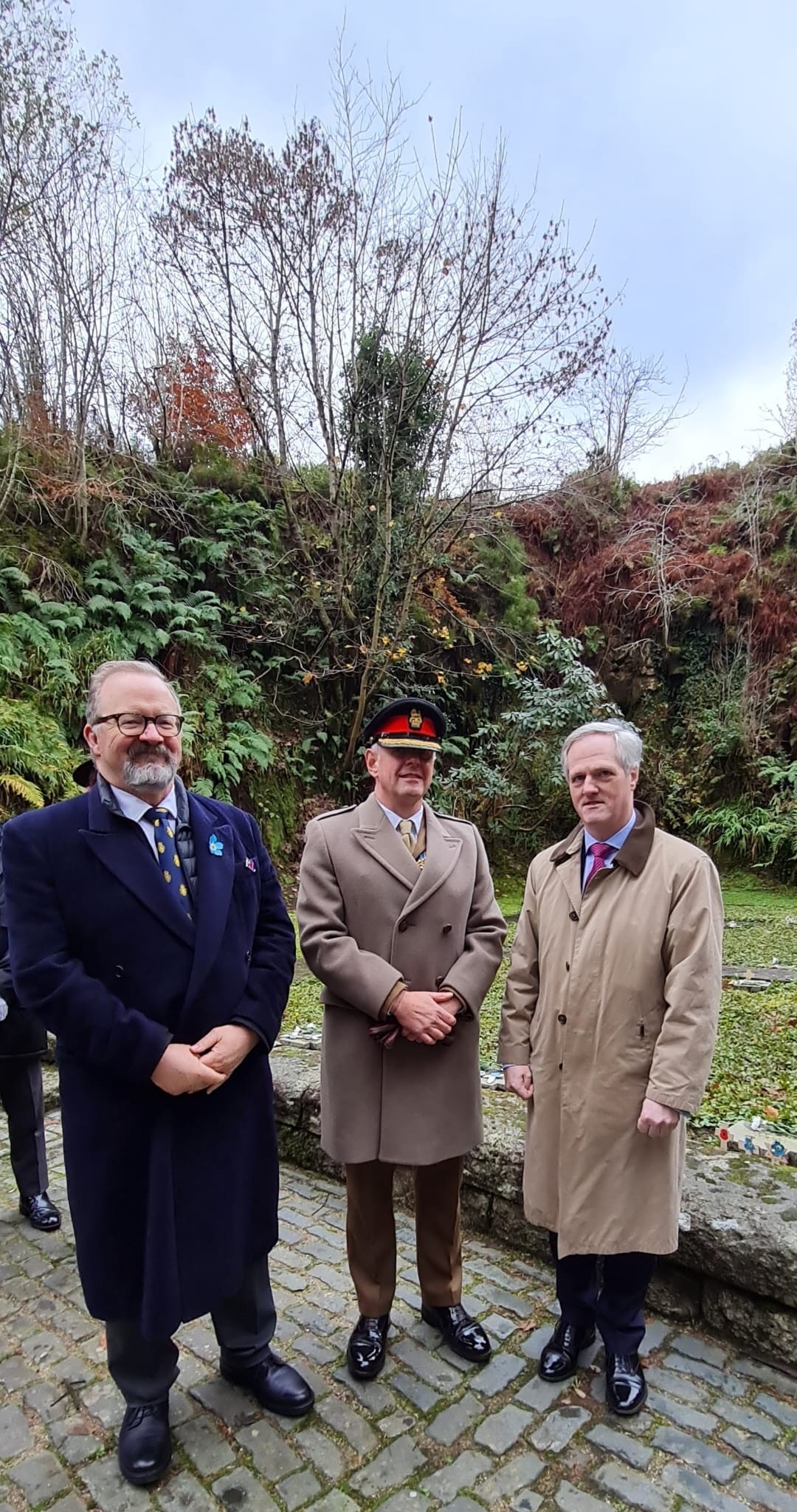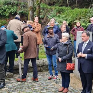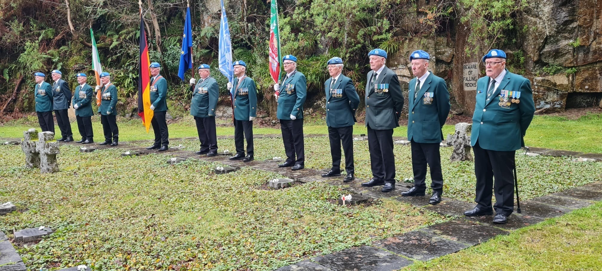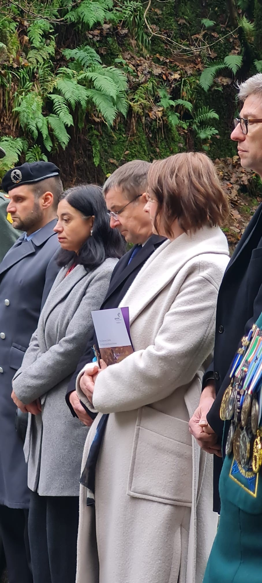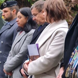 On a wet and windy day, guests gathered to honour the 134 German military servicemen and civilians from both world wars who are laid to rest in the German Military Cemetery, as well as those who have lost their lives to war and conflict and who are living with its ongoing impacts today.